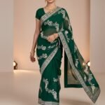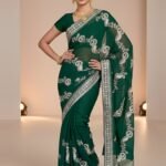 Crafted from lightweight and breathable fabric, this saree offers a soft touch against the skin and ensures effortless draping. Its flowy texture enhances your silhouette while keeping you comfortable throughout long celebrations.